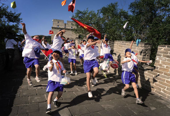 汉能与中华红丝带基金组织艾滋病致孤儿童游览万里长城
