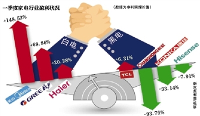 单从报表看家电企业的日子,是几家欢乐几家愁。截至昨日,格力、美的、海尔、海信、TCL、长虹等几大家电企业一季报出齐。整体来看,黑电企业持续下滑,营收增长和盈利能力不敌白电企业,而白电本身竞争也愈演愈烈,格力美的PK赛进入白热化。