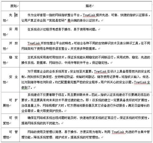 为了实现系统建设目标,我们为烟草行业指纹认证平台系统项目确定如下总体设计原则: