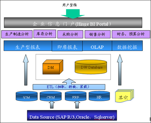 ERP是面向操作流程的信息系统,从技术角度来说,是一种联机事务处理系统(OLTP,On-Line Transaction Process),实现了业务流程的自动化;从管理角度来说,它打破了企业部门之间的界限,满足了管理人员掌握、计划、控制、分配企业全部资源的需求,但是它并不能向决策人员提供强大的分析功能。而且ERP的实施过程中,由于系统设置已被固定,用户很难按照实际情况的变化对其再作修改,使得对系统内大量数据、信息的利用能力低下,因此管理者无法及时得到决策所需要的支持信息。为了解决企业日益膨胀的数据量和决策人员的分析能力缺乏之间的矛盾,一种建立于ERP系统基础之上的商务智能解决方案(BI,Business Intelligence)便应运而生。和勤帮助世界五百强的制造企业,基于这些企业内部的SAP系统成功实施了SAP-BI的解决方案。商务智能解决方案对企业的商业信息进行搜集、加工、管理和分析,使企业的各级决策者获得知识或洞察力,帮助他们更快地做出对企业更有利的决策,全面提升企业的信息利用与决策能力。