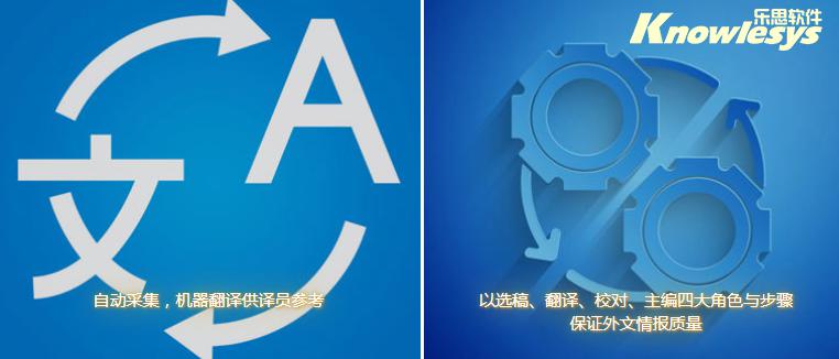 另外,乐思翻译中心系统以选稿、翻译、校对、主编四大角色与步骤,保证外文情报质量。系统从网络采集大量文章内容后,能够通过人工智能系统预判有价值的文章,依靠精准的机器翻译系统自动翻译供政企后续参考,并人工翻译校对已选文章,经过校对与主编审核,最终形成内部情报中心,为政企分类展示外文情报。