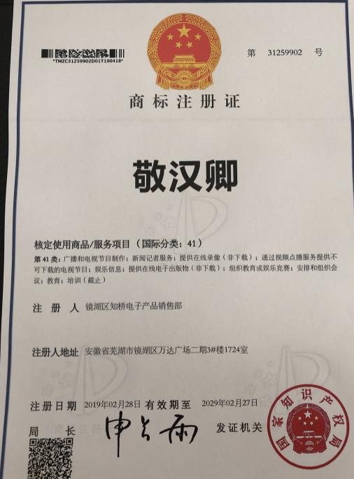 近期,在网上拥有近1300万粉丝的up主敬汉卿发布了一条动态,称收到了一家名为“镜湖区知桥电子产品销售部”的商标侵权通知函。