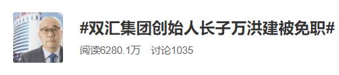 #双汇集团创始人长子万洪建被免职#微博话题登上热搜,阅读6280.1万,讨论1035,引起网友热议。