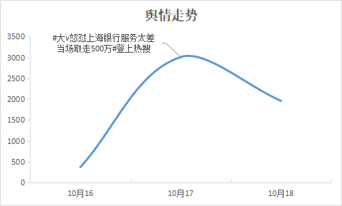 当事人在10月16日下午在自媒体平台发文吐槽上海银行服务态度差的信息,16日21点40份左右,凤凰网发信息称“#大V怒怼上海银行服务太差当场取走500万# 用劳斯莱斯装走”,晚间#大v怒怼上海银行服务太差当场取走500万#话题便引起众多网友围观,其中热评之一表示“怀疑是劳斯莱斯的公关新闻”,还有人表示“替这个银行说话大可不必,哪个网点对百万存款以上客户态度好得很。也不知道这个网点咋想的脑子全是水。”截至目前该话题引发阅读1.7亿 讨论5453。
