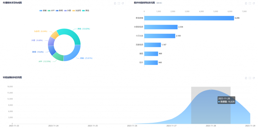 根据乐思网络舆情监测发现,滴滴崩了相关信息在28日到达传播高峰期,该日约有16628条相关信息,主要分布在其他媒体平台和微博,微博有6286条相关信息。