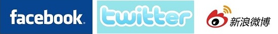 全球三大微博 -- Facebook, Twitter,新浪微博 以及国内其它微博网站如腾讯微博,搜狐微博等。