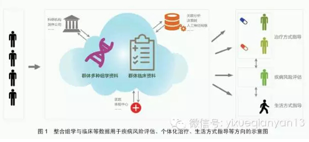 在过去很长一段时间,人们只有在身体不适、已经患某种疾病时才去寻求专业医疗的帮助。而此时疾病往往已进展至较为严重的阶段,错过了最佳的治疗时间。大数据时代的到来,特别是基因组、转录组、表观组、蛋白质组、代谢组、微生物组等生物大数据的不断积累,为利用多重组学数据评估健康人群的患病风险提供了重要的理论依据,《黄帝内经》提出的“上医治未病”有望成为现实(图1)。