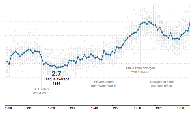 比如,纽约时报做得很好,通过定制化的交互式图形,来为他们的文章添彩。可以在这里看到更多他们的作品。我们来看一些完美的定制化图表案例: