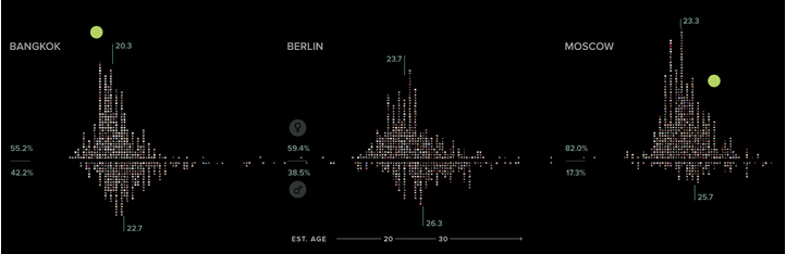 Selfiecity.net的这个例子做得很好,用了真实内容来创建图表。