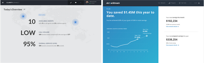 上面的图来自我们最近的两个项目。两者都通过文字展现用户所需的信息,并没有依赖需要解释说明的图表。