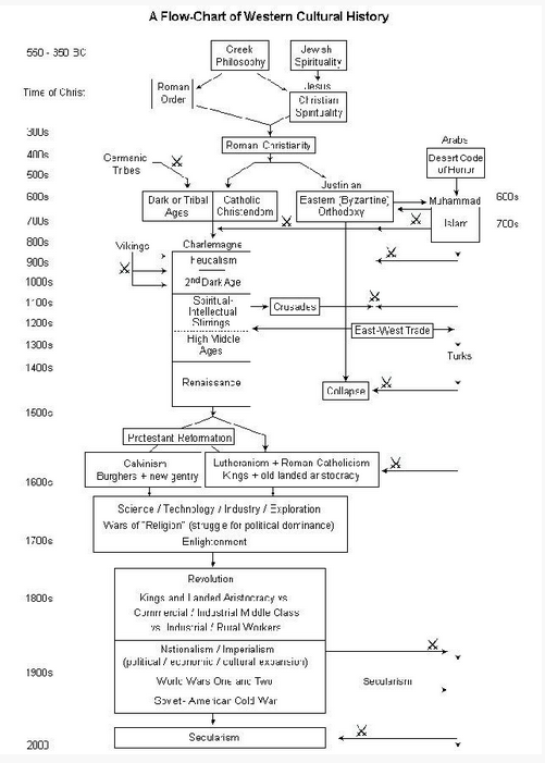 在哲学和艺术史的研究里,我们常常通过三种方法来判定一个人属于什么流派:他的风格如何、他推崇会跟随过谁、他处于什么时代。在这张西方文化史的时间线图里,背景形态刻画了各类流派存在的时间跨度,顺着时间线,我们可以点击查看各流派之间的冲突和融合。具有关系的时间线目前越来越多地搭配交互使用,在电脑端和移动端数据新闻页面上,均有过出色的实践。
