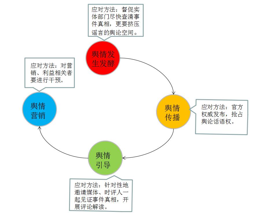 答案并不难,在笔者看来,可依据舆情走势四个阶段不同的特点,开展针对性应对方案。