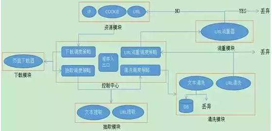 六个主要的组成部分【控制中心】【下载模块】【抽取模块】【清洗模块】【消重模块】【资源模块】
