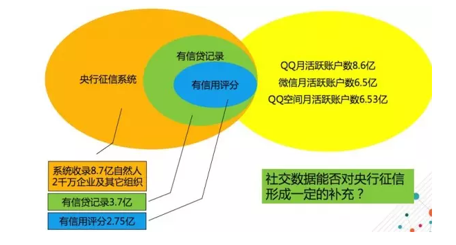 综合以上四图的数据来看,如果社交数据可以用到征信中的话,是不是可以对央行的征信系统做一个很好的补充呢?刘黎春表示,这是腾讯在做社交征信项目时最开始思考的问题。社交数据非常庞大,但并不一定都是有效数据,还要看具体应用的业务场景是不是和数据有相关性,这些数据是不是真的能够用到最后的模型或者算法中去。这样问题就接踵而来,社交数据与信用评级有关系吗? 交易数据天然具备金融属性,社交数据有吗? 社交数据非结构化程度高,怎么挖掘并有效使用?