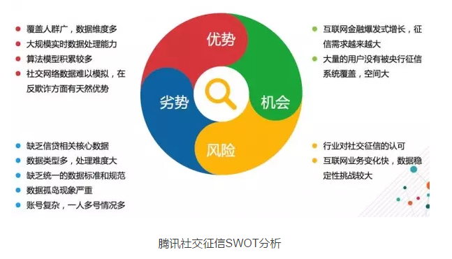 上图为腾讯社交征信SWOT分析,优势、劣势、机会、风险一目了然。有了这样详细的分析,做个人征信是必然的事情,但做征信之前要清楚的知道征信对象是什么样子,所以开始着手做个体用户画像的研究。