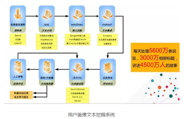 刘黎春表示,做个体用户画像研究遇到的挑战主要有如下三方面:其一,如何充分利用腾讯各种丰富的数据资源及之间的联系?其二,如何使用户画像适应各种不同的应用场景?其三,如何高效的处理海量的用户数据(超过10亿的QQ用户, 超过千亿级别的各类日志数据) ?