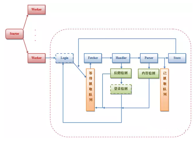网络爬虫主要由控制器,解析器,资源库组成。