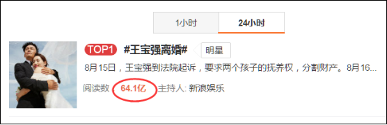 (图1:微博话题“王宝强离婚”阅读量达64.1亿)