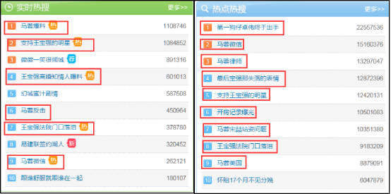 (图2:微博实时热搜榜和微博热点热搜榜)