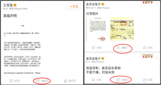 (图3:王宝强和马蓉双方对离婚事件的微博声明)
