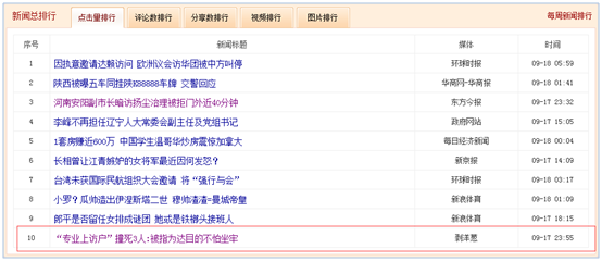 在新浪每周新闻排行中,““专业上访户”撞死3人:被指为达目的不怕坐牢“这条新闻占据该榜单第十位,并且收到了多达3万条评论,可见,社会各界对于此次事件给予高度的关注。