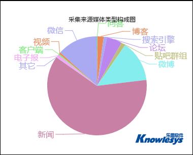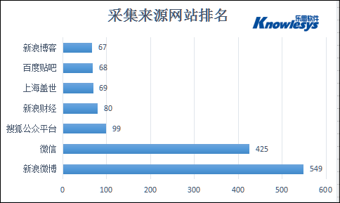 从采集来源网站TOP前七可以看出,新浪微博和微信已经占据数据的主要来源,成为传播的主要场地之一。因此在舆情传播的过程中微博和微信可以作为舆论传播的重要工具和平台加速舆论高潮的出现,同时也成为了舆论监测的重要阵地。