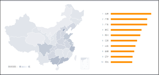 从“南方黑芝麻糊两度登上质量“黑榜”事件的地域舆情分布图分析,北京、广西、广东占据地域舆情的前三位排名,地域舆情呈灰色高亮显示,其次浙江、四川和江苏对于“南方黑芝麻糊两度登上质量“黑榜”事件的关注度也是持续走高。