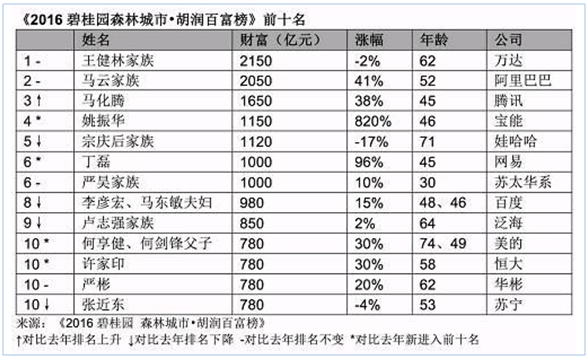 2016年胡润中国百富榜