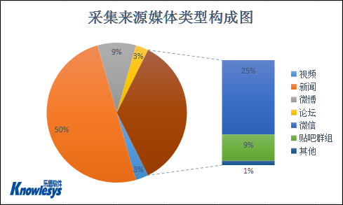从乐思软件舆情监测中心的数据分析“医生受贿546万”媒体构成类型比例图中,排名在前三位的媒体分别是:新闻、微信和贴吧群组和微博。其中除了主流媒体新闻外,草根媒体在舆情传播中也充当着及其重要的作用,微信、贴吧群组和微博作为自媒体的代表,推动着舆情的发展。