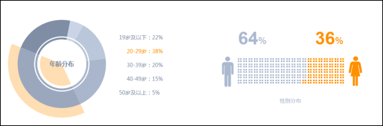 从“网贷背后灰色催债链”的人群属性图分析,男性占比64%,女性仅36%,男性对于该事件的关注度明显大于女性。从关注的年龄层来看,20—29岁占比最大达38%,其次是30—39岁,占比20%,青壮年成为了“网贷背后灰色催债链”事件关注的主体人群。