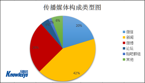 从乐思软件舆情监测中心的数据分析“网贷背后灰色催债链”媒体构成类型比例图中,排名在前三位的媒体分别是:新闻、微博和微信。新闻作为主流媒体,不管是在舆情初期的报道还是舆情传播中期的舆论引导,都显示着强大的引导力。微博和微信作为新兴的网络媒体,为舆情的传播提供了一个简单易操作的平台,使得每个网民不费吹飞之力,动动手指就能参与舆情的再加工。