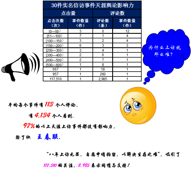 天涯信访话题信息来源单一,在一定程度体现出参与信访话题的群体单一性,可预测信访、上访人群是某一类群体,在一方面体现出公众舆论更关心与其利益相关的事件和话题。