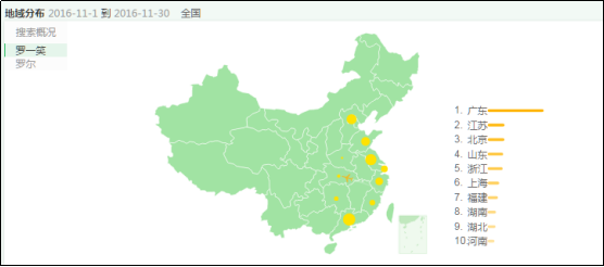 从地域舆情的分布图中可见,罗一笑事件的事发地广东省地域舆情最为强烈,舆情声势排在各省的榜首,其次是江苏省和北京市,地域舆情声量也是持续高涨,除此之外山东省、浙江省和上海市,地域舆情关注热度也很高。