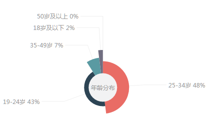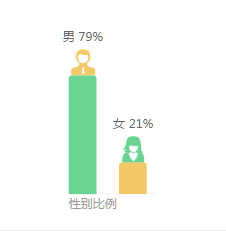 “微信小程序”舆情受众中,年龄分布最广的是25-34岁,占比48%,其次是19-24岁,占比43%,年轻阶层成为该舆情的主要受众。在男女比例分布中,男性占比79%,女性占比21%,男性对于微信发布小程序的舆情更为关注。