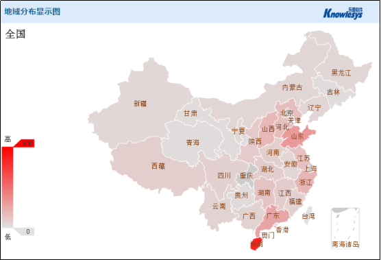 在“两会”舆情的分布中,地域热度最高的是海南省,日均发文超过500篇,地域舆情呈红色高亮显示。除此之外,广东省、山东省、浙江省、山西省、江苏省等沿海地区的地域舆情也持续走高,相对而言,西部地区的地域舆情声量低于懂不沿海地带,但是久西部地区而言,西藏省的地域舆情较为突出,呈现微红状态。