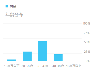 “两会”的舆情受众,年龄层主要集中在30—39岁,占比50%,其次是20—29岁,占比30%,排在第三的是40—49岁,占比15%。50岁及以上的人数占比最小,青壮年成为该舆论的主要推动者。从男女性别来分析,男性占比与高于女性,男性对于政治话题的关注热情比女性高。