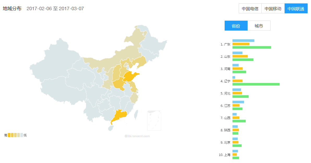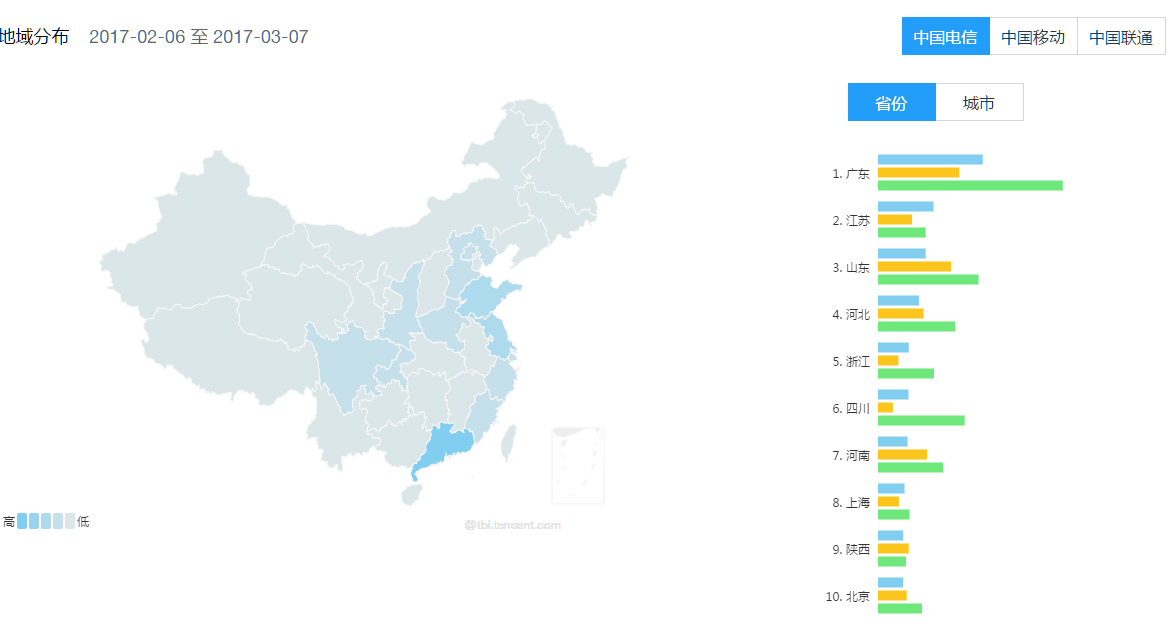 3、三大运营商地域舆情图