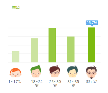 “三大运营商提速降费”的舆情受众,男性占比72%,女性占比28%,性别比例分布较为不平衡;在年龄的分布中数据主要集中在25—30岁,以及35岁以上人群,分别占比26.6%和26.7%。