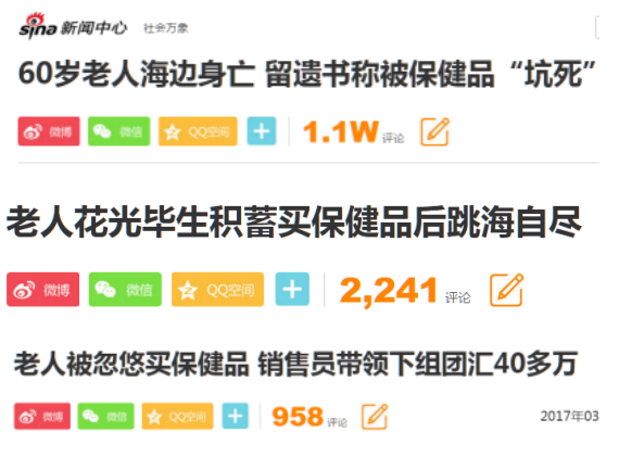 这么多年来,保健品市场历来乱象丛生,充斥着大量似是而非的养生谣言、伪科学噱头,以及虚假的广告陈述。近年保健品市场逐渐收缩到老年人市场,现代的老年人几乎没有接受过系统的科学教育,他们的知识结构和经验不足以识破保健品营销噱头背后的谎言。所以,老年人在各种保健品“骗局”中总会成为最容易受伤的人群。