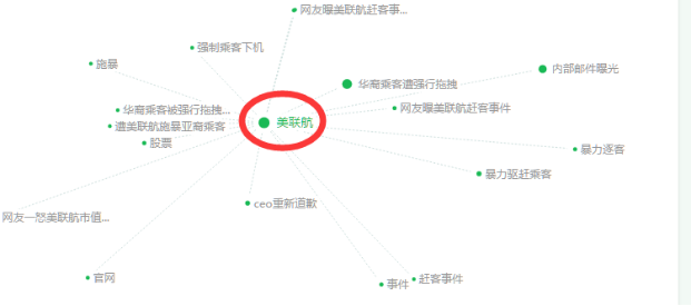 从“美联航”的舆情关键词图谱分析,相关舆情关键词中热度强的有“华裔乘客遭强行拖拽”、“网友曝美联航赶客事件”、“内部邮件曝光”、“CEO重新道歉”等。热度较强的有“强制乘客下机”、“股票”、“施暴”等。从关键词图谱中看,“美联航”相关性最密切的舆论集中在当前对华裔乘客强行拖拽的事件上。。