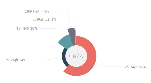 “美联航”的舆情受众,年龄的分布中数据主要集中在25—34岁,占比61%。其次是19—24岁,占比24%,35-49岁占比10%,中青年成为该舆情的主要受众;从性别方面分析,男性占比64%,女性占比36%,男性对于该舆情的关注度大于女性。