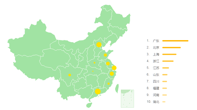 在“易到用车”舆情的分布中,舆情热度最高的省份是广东省、其次是北京市、上海市排在第三位。从整体来看,沿海经济发达地区地域舆情热度也比较高。