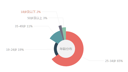 “易到用车”的舆情受众,年龄的分布中数据主要集中在25—34岁,占比65%。其次是19—24岁,占比19%,排在第三的是35—49岁,占比11%。中青年成为该舆情的主要受众;从性别方面分析,男性占比71%,女性占比29%,男性对于该舆情的关注度大于女性。
