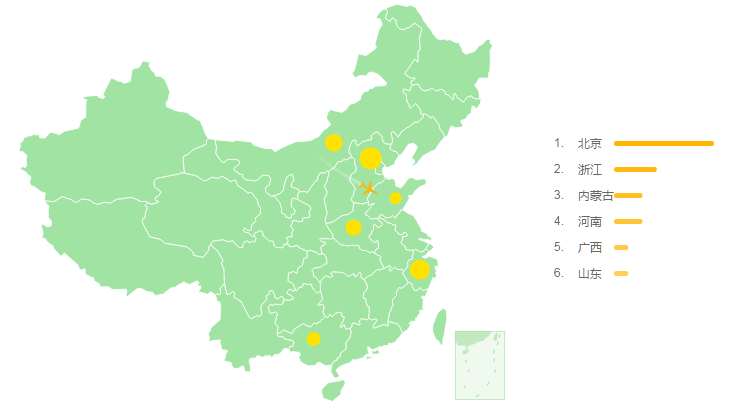 在“鸟巢领钱事件”舆情的分布中,舆情热度最高的省份是北京市,排在第二的是浙江省、第三的是内蒙古。因为北京是事发地,所以地域舆情热度最高,呈现黄色高亮显示。由于地域舆情很好的反应了舆论的区域性差异,这也给相关企业带来了启示:在舆情热度高的省份,应该开展重点公关。