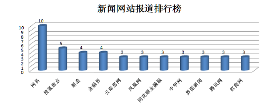 在新闻网站报道排行榜前TOP10中,排在第一位的新闻媒体是网易,数据为10条,排在第二的是搜狐焦点,数据为5条,新浪和金融界并列第三,数据为4条。此外,云南房网、凤凰网、同花顺金融服、中华网、界面新闻、腾讯网、红商网都是奥宸地产重要的新闻来源网站。