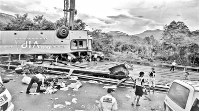 7月6日13时许,在广河高速禾岭头隧道口往河源方向约100米处,一辆客运大巴发生翻车事故。北京青年报了解到,涉事客车上共有44人,事故造成19人死亡,相关救援仍在进行。
