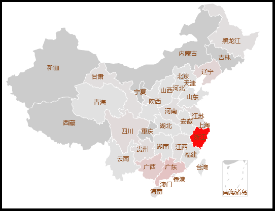 在“乌镇互联网大会事件”地域舆情的分布中,舆情热度最高的省份是浙江省,地域舆情呈现红色高亮显示。由于此次事件的发生地在浙江乌镇,所以该地区地域舆情热度最高,目前相关发文已经超过400篇。