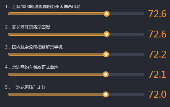 截止目前在知微影响力指数中,相关事件的指数达到了72.2,排在同类事件的第三,且一直热度很高,指数呈上升趋势。