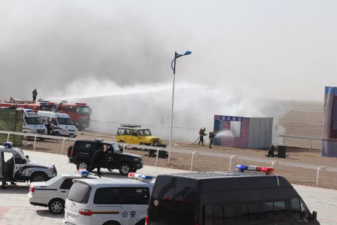 此次演练,以一伙暴恐分子企图通过京新高速公路经阿拉善盟前往内地实施暴力恐怖袭击为背景,针对驾车冲撞、爆炸、劫持和刀斧砍杀等暴恐活动预设情景,从实战角度出发进行合成演练,最终在各警种和多部门密切配合、联合处置下,成功抓捕暴恐分子,解救人质,化解危机,处置警情。