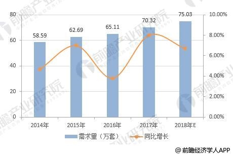 2014-2017年中国OA市场需求量规模持续扩大,2014年中国OA市场需求量为58.59万套,到2017年已超过70万套大关,市场需求量为70.32万套,比2016年增长了8%。